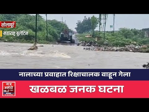 सोलापुरातील छत्रपती संभाजी महाराज चौकजवळ नालाच्या प्रवाहात रिक्षाचालक वाहून गेला #marathinews #newsmarathi #news24marathi #newsmarathi24x7
